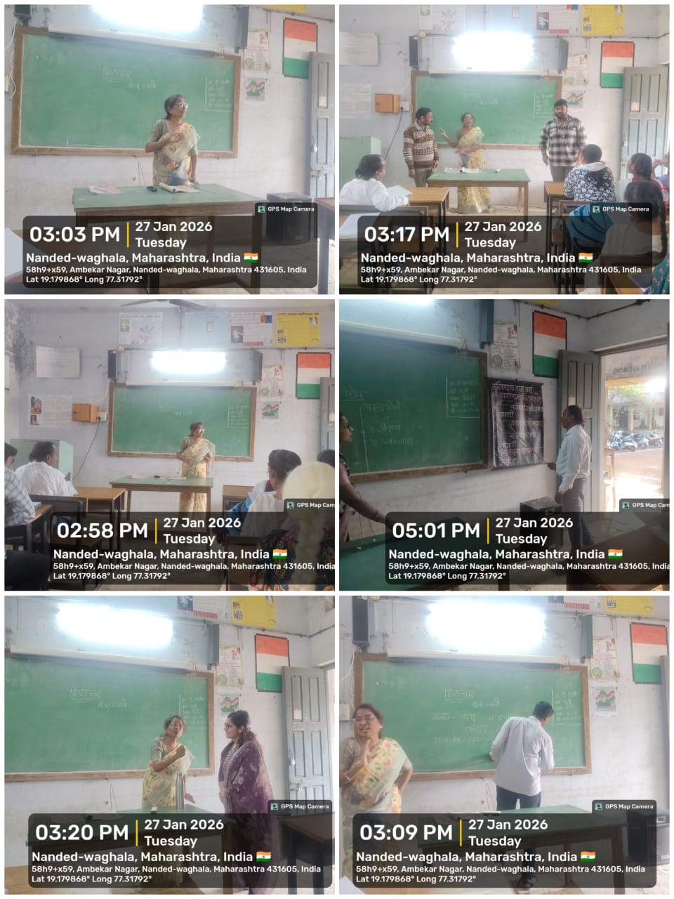 आज दिनांक 11जानेवारी 2025 रोजी राजर्षी शाहू विद्यालय वसंत नगर, नांदेड येथे डॉ. भुसारे यांनी सराव पाठ व निरीक्षण संदर्भात मार्गदर्शन करताना