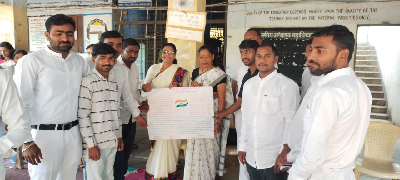 या उपक्रमअंतर्गत दि.९/८/२३ रोजी शपथ घेतना मा प्राचार्य, सर्व प्राध्यापक, शिक्षकेतर कर्मचारी व विद्यार्थी, बालवाडीतील