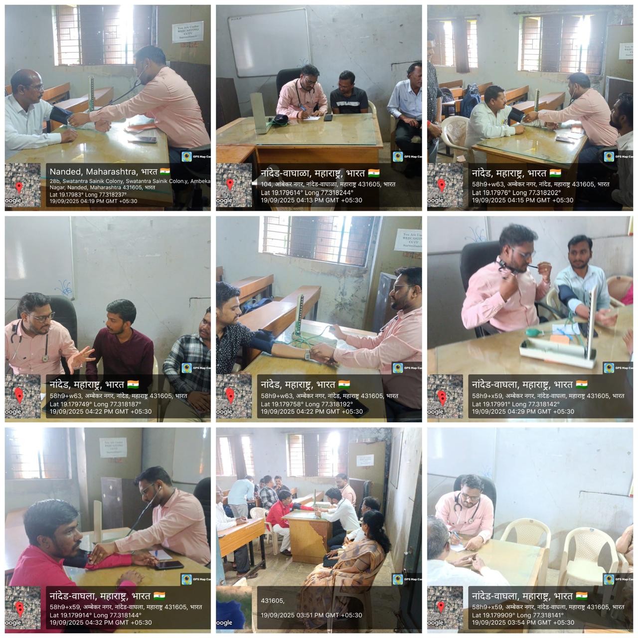 आज दिनांक 19 सप्टेंबर 2025 रोजी रोजी सफाई मित्र सुरक्षा शिबीर अंतर्गत आरोग्य तपासणी शिबीर चे आयोजन करण्यात आले ,या प्रसंगी डॉ योगेश देशमुख ,डॉ गणेश हाके ,डॉ अनिल सिरसाट इत्यादी डॉक्टर यांनी सुरक्षा मित्र व प्रशिक्षणार्थ्यांची आरोग्य तपासणी करून त्यांना आरोग्याची काळजी कशी करावी या बाबत मार्गदर्शन करून औषोधोपचार ची माहिती दिली ,या वेळी महाविद्यालयाचे प्राचार्य मा.डॉ उर्मिला धूत ,कार्यक्रम प्रमुख डॉ शाकेर ,सर्व शिक्षक ,शिक्षकेत्तर कर्मचारी व प्रशिक्षणार्थी उपस्थित होते ( Campaign on safai Mitra Suraksha has organised on dated 19 September 2025 ,Dr Yogesh Deshmukh ,Dr Ganesh Hake ,Dr Anil Sirsat these three doctors were checkup the health of Safai Suraksha Mitra ,student Teacher & guided them about health &medicine )