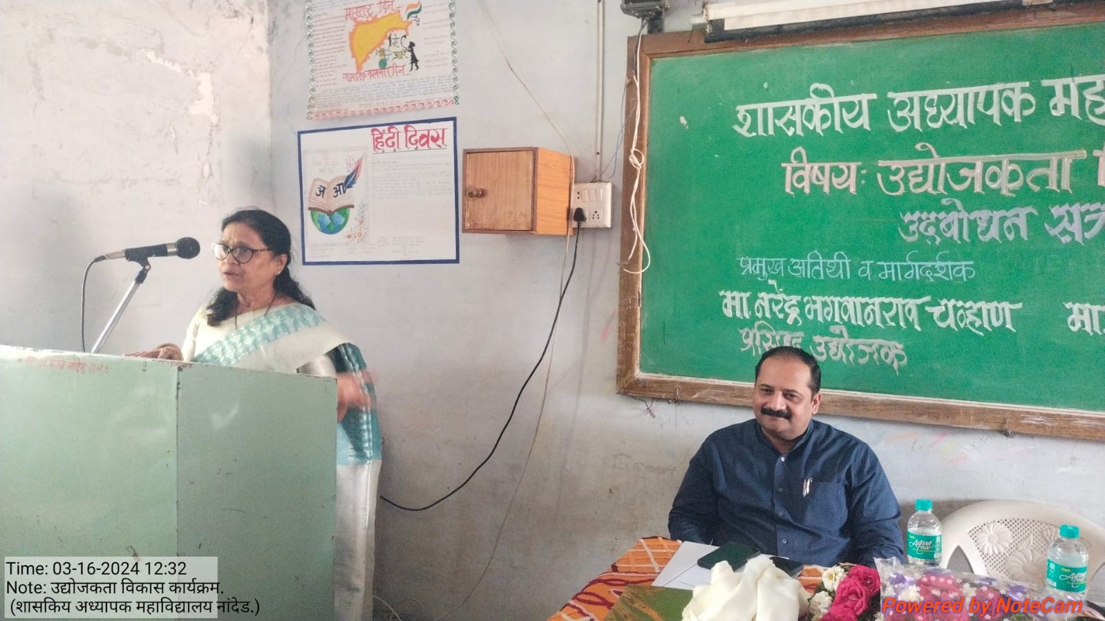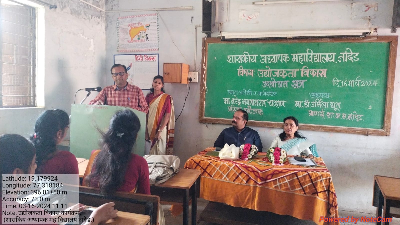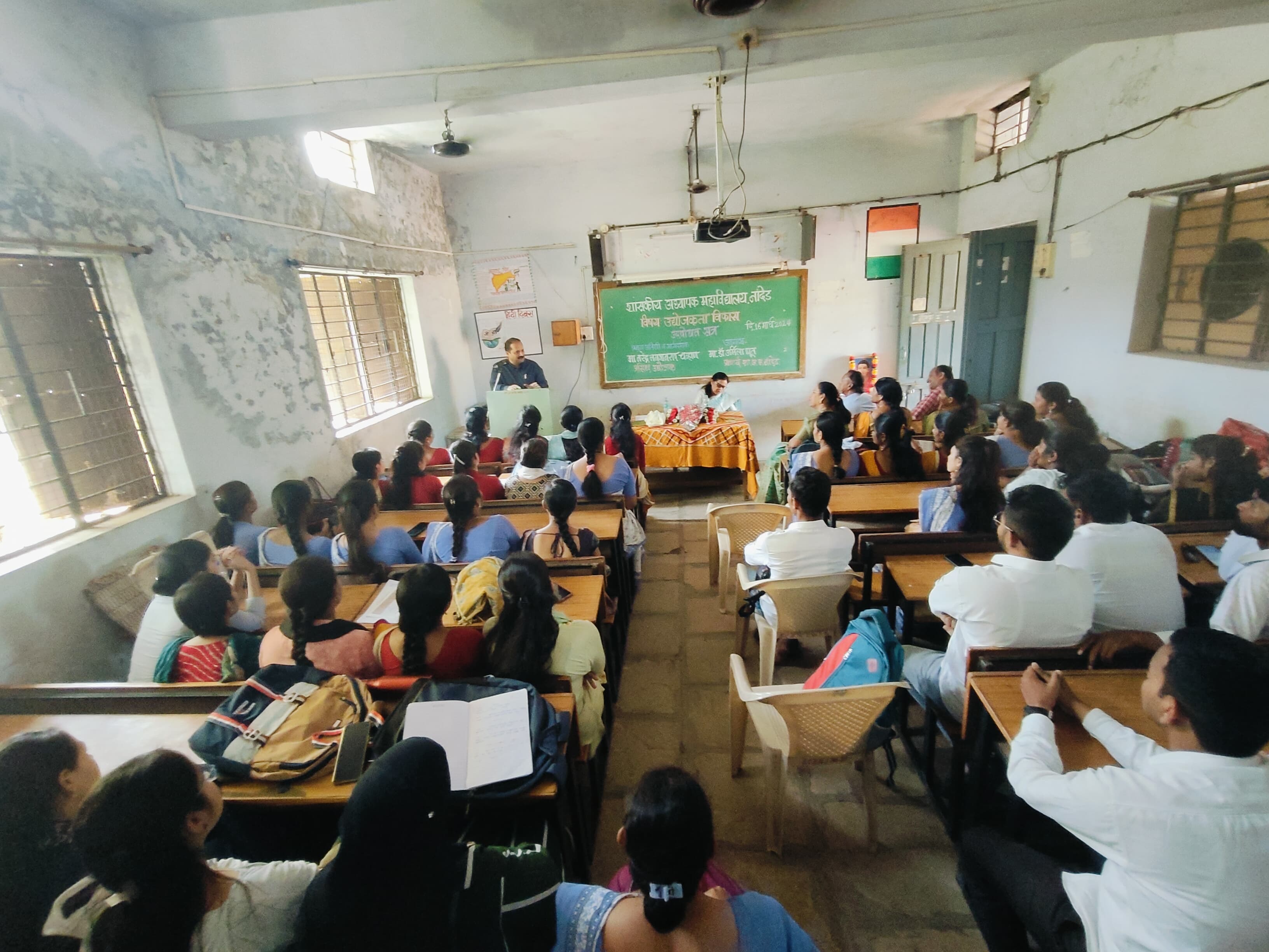 आज दिनांक 24 फेब्रुवारी 2026 रोजी महाविद्यालयात. एम पी एस सी. परीक्षा व तयारी या विषयावर एका दिवसाची कार्यशाळा घेण्यात आली.श्री कैलास विठ्ठल तिडके,जिल्हा बाळ विकास प्रकल्प अधिकारी,नांदेड यांनी द्वितीय वर्षाच्या प्रशिक्षणार्थ्यांना एम पी एस सी(MPSC) परीक्षा व तयारी या बाबत चे मार्गदर्शन केले .या वेळी महाविद्यालयाच्या प्राचार्य डॉ उर्मिला धूत यांनी प्रशिक्षणार्थ्यांनी स्पर्धा परीक्षांचा अभ्यास करावा या बाबत उदबोधन केले ( one day work shop for 2nd year teacher trainee has organised on MPSC exams & preparation . Dist Bal Vikas project offer Nanded Shree Kailash Vitthalrao Tudke has guided to teachertrainee .College principal Dr Urmila Dhoot oriented to teacher trainee about awareness of MPSC exam on dated 24 February 2026)