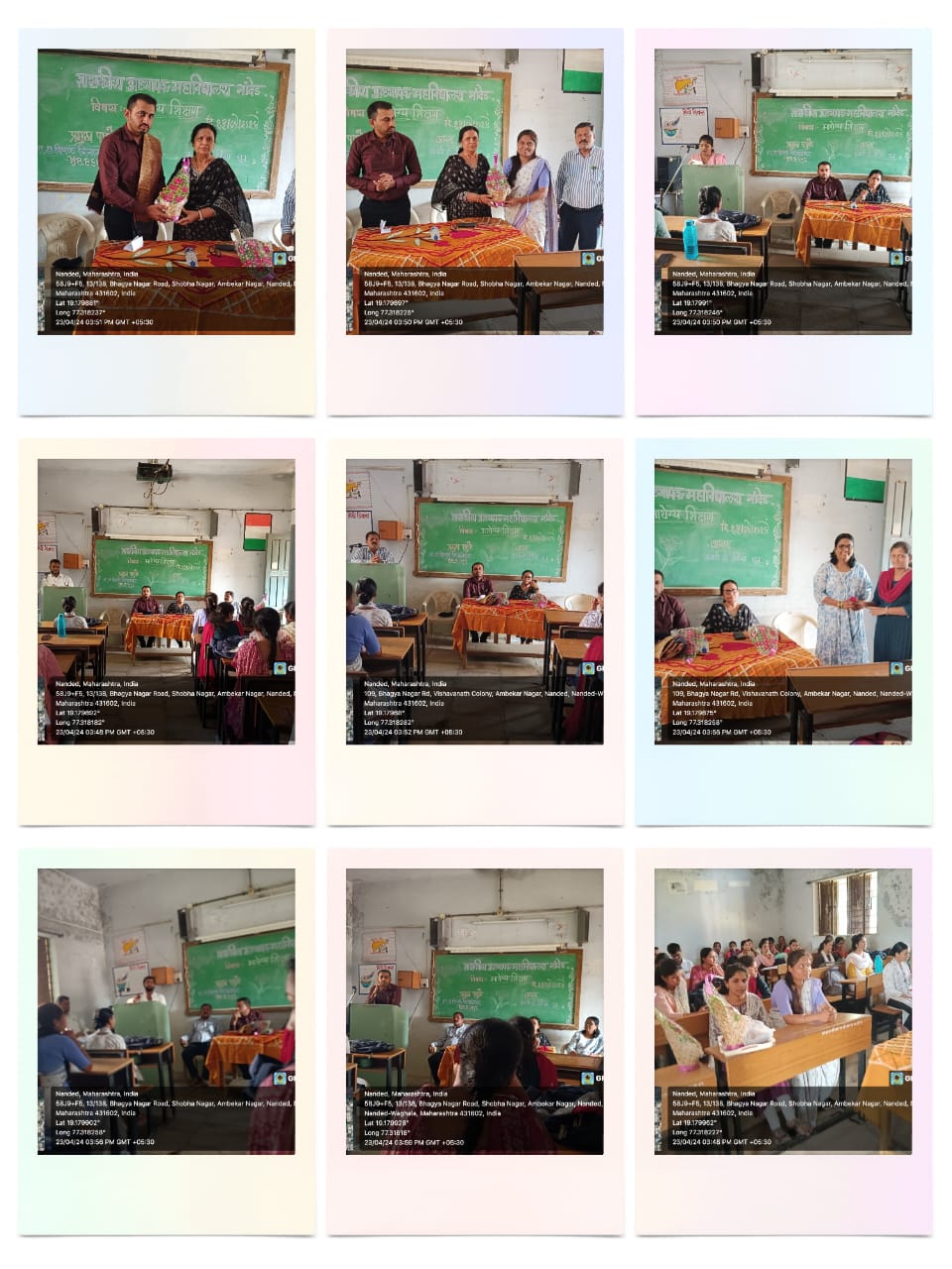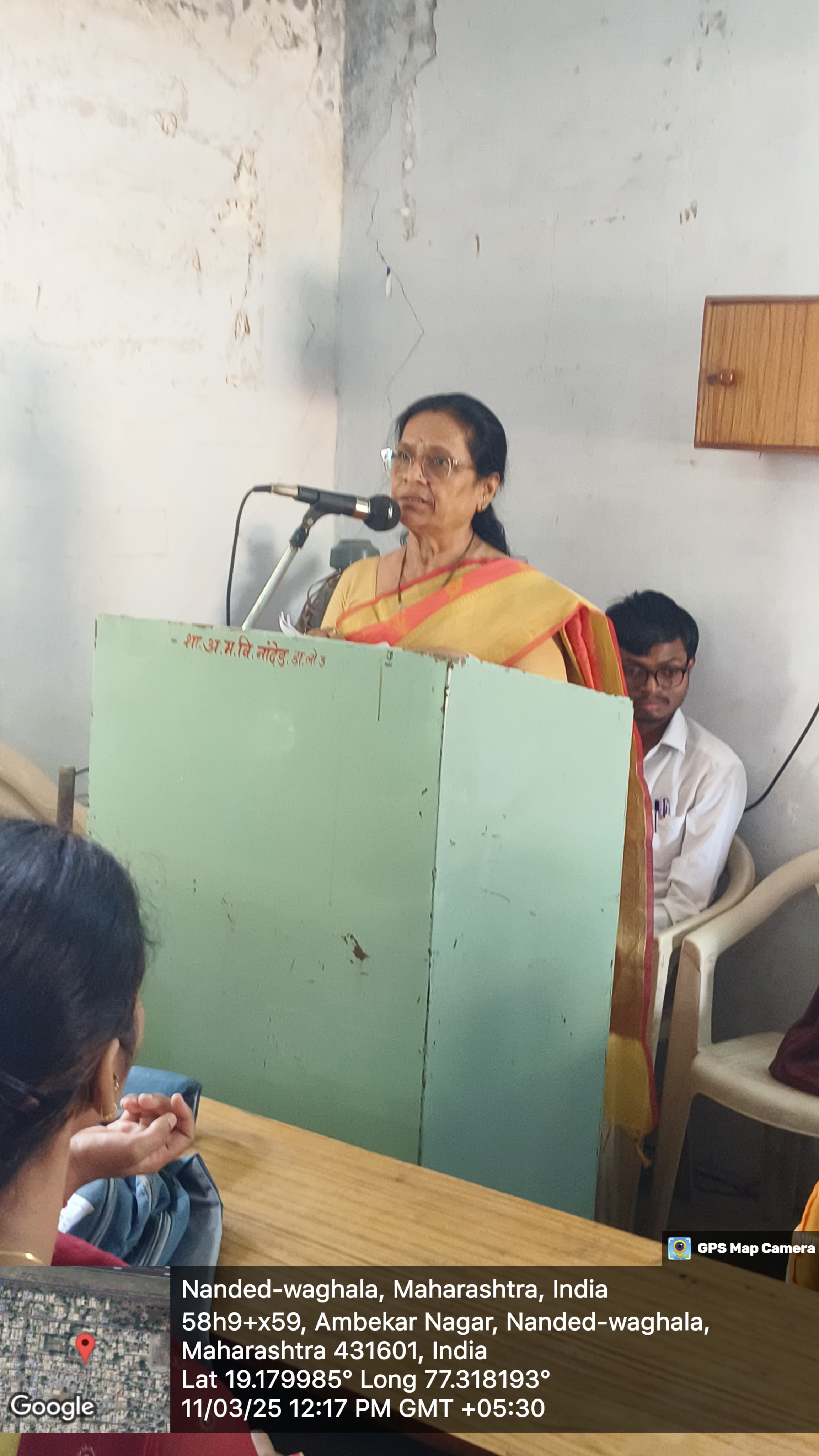 त्याठिकाणी शासकीय अध्यापक महाविद्यालय नांदेड च्या प्राचार्य डॉ.ऊर्मिला धूत मॅडम, व प्रा.डॉ.रामटेके मॅडम, प्रा.डॉ.सारंग मॅडम, प्रा.डॉ.भुसारे सर,