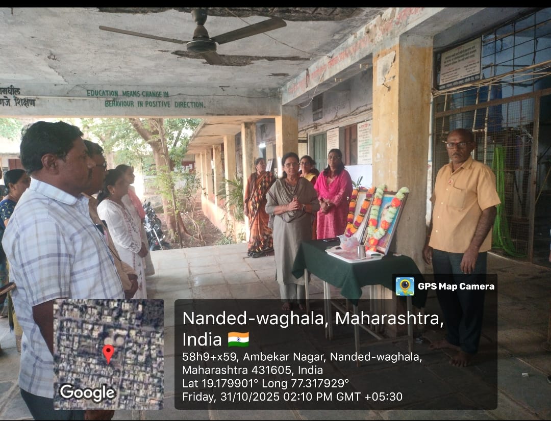 आज दिनांक 31 ऑक्टोम्बर 2025 रोजी. इंदिरा गांधी यांची पुण्यतिथी व राष्ट्रीय संकल्प दिवस प्रतिमा पूजन करून करण्यात आला ,तसेच. सरदार वल्लभ भाई पटेल यांची जयंती व राष्ट्रीय एकात्मता दिवस प्रतिमा पूजन व राष्ट्रीय एकटा दिवसाची शपथ घेऊन साजरा करण्यात आला ( Death Anniversary of Indira Gandhi & National Resolution day ,Birth Anniversary of Sardar Vallabh bhai Patel & National Integrated Day Celebration by Image Warship & oath has taken on national integrated day on dated 31 October 2025 )