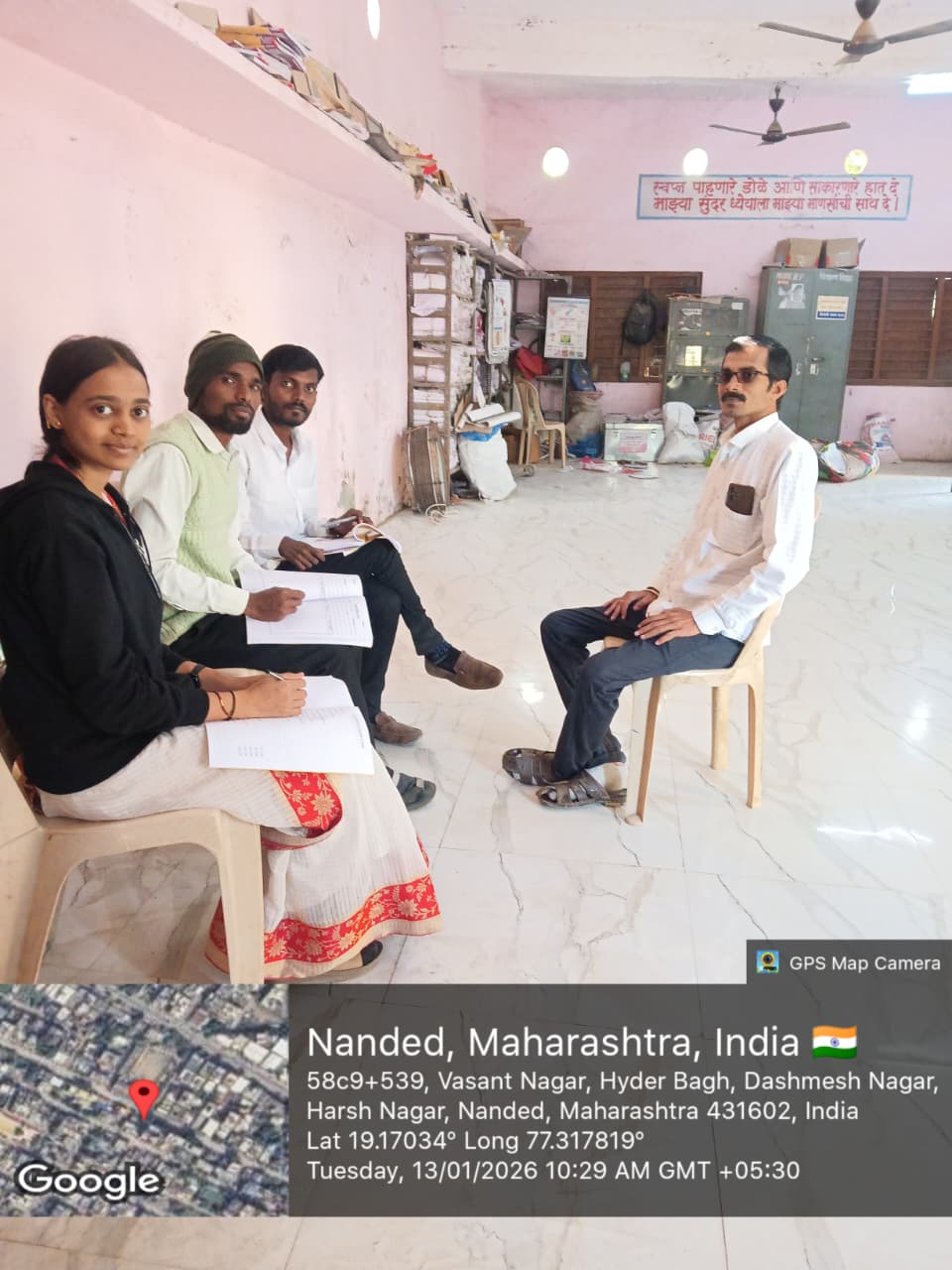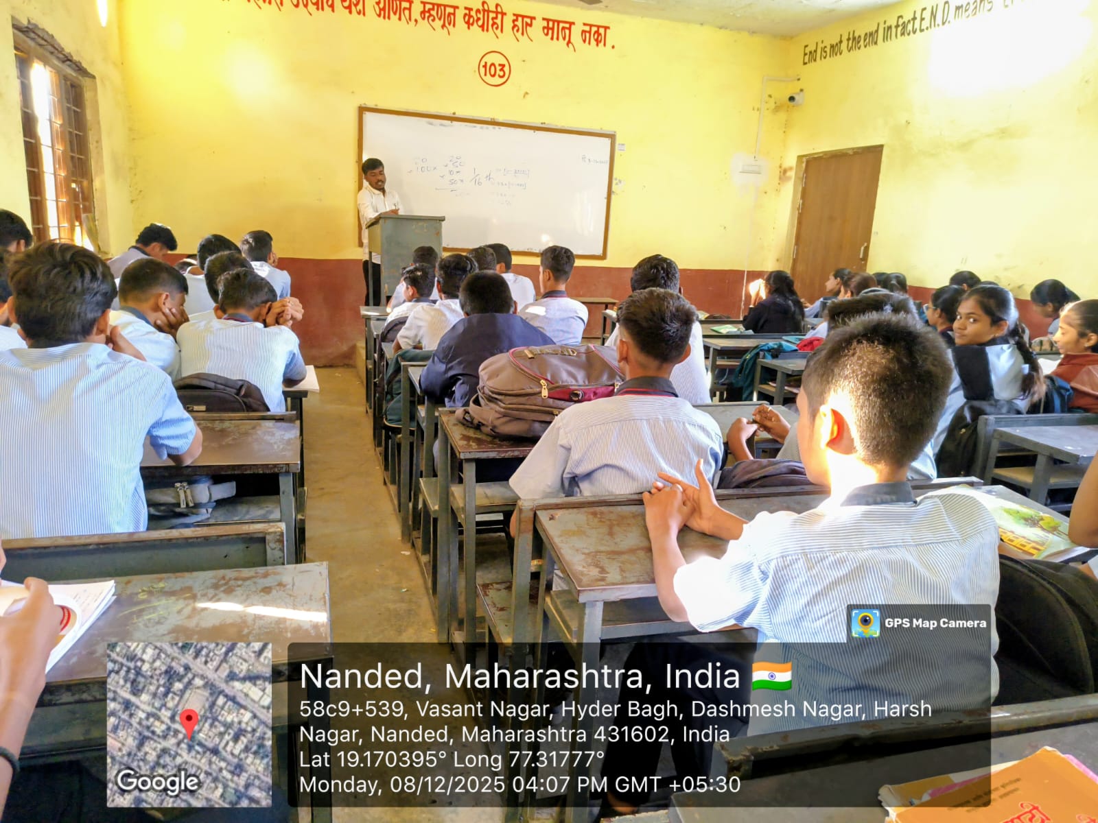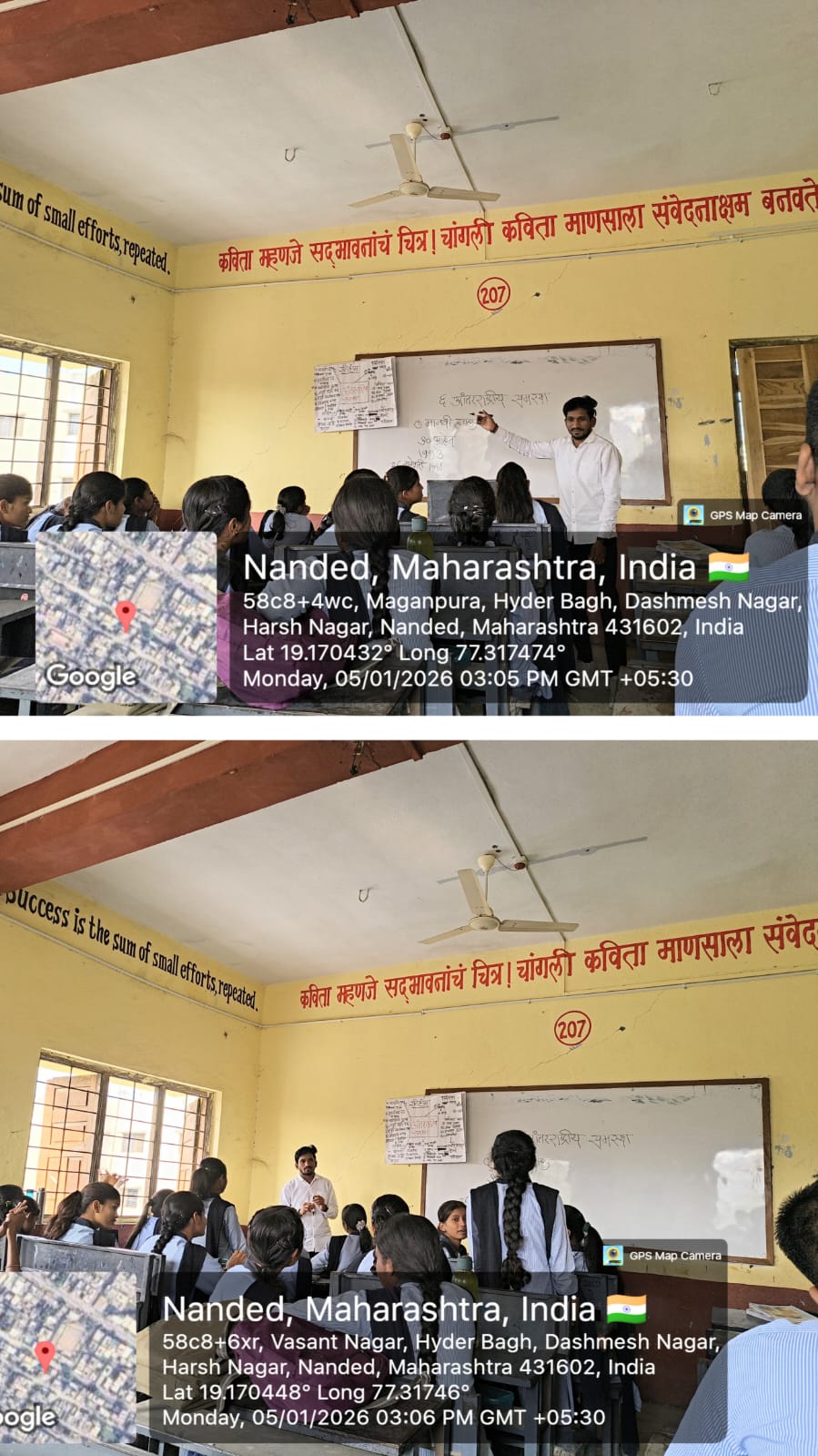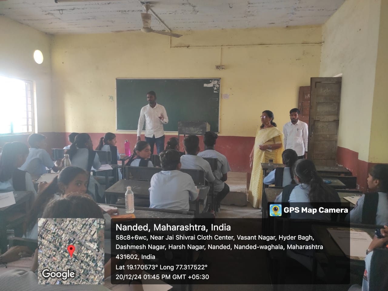 आज दिनांक 11 जानेवारी 2025 रोजी राजर्षी शाहू विद्यालय वसंत नगर ,नांदेड. येथे सकाळच्या सत्रात येऊन प्राध्यापक डॉक्टर शाकीर सर यांनी गट क्रमांक तीनच्या विद्यार्थ्यांना मार्गदर्शन केले.
