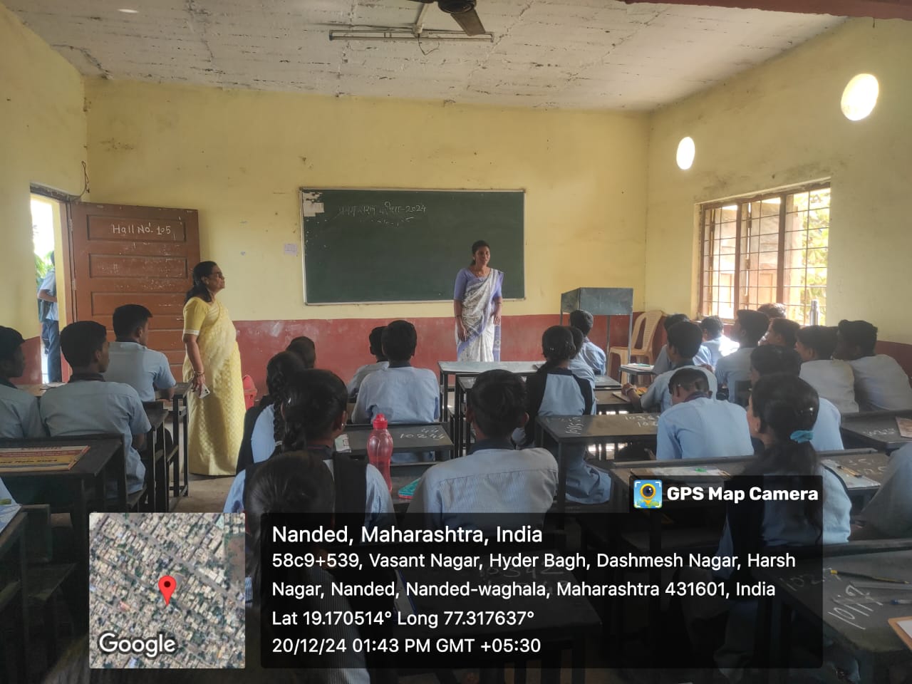 आज दिनांक 20 डिसेंबर 2024 रोजी राजर्षी शाहू विद्यालय येथे छात्रसेवाकाल अंतर्गत छात्राध्यापकांचे पाठ निरीक्षण करताना मा. प्राचार्य डॉ उर्मिला धूत