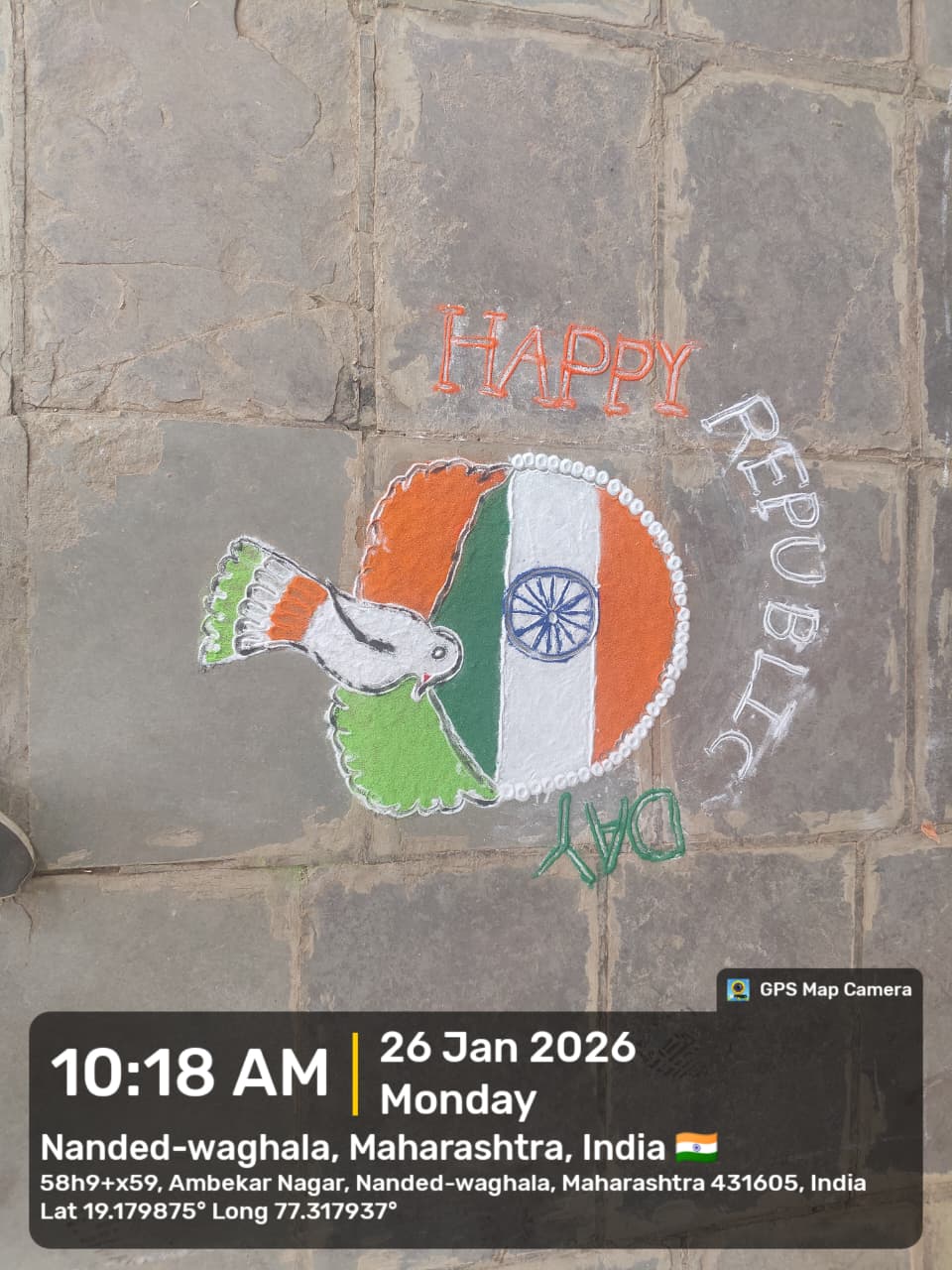 आज दिनांक 26 जानेवारी 2026 रोजी सकाळी 8.45 वाजता. बीएड प्रथम वर्ष साठी देश भक्ती गीत गायन व रंगोली स्पर्धा घेण्यात आली(patriotic song singing & Rangoli competition has organised for first year on 26 January 2026 on 8.45 a m)