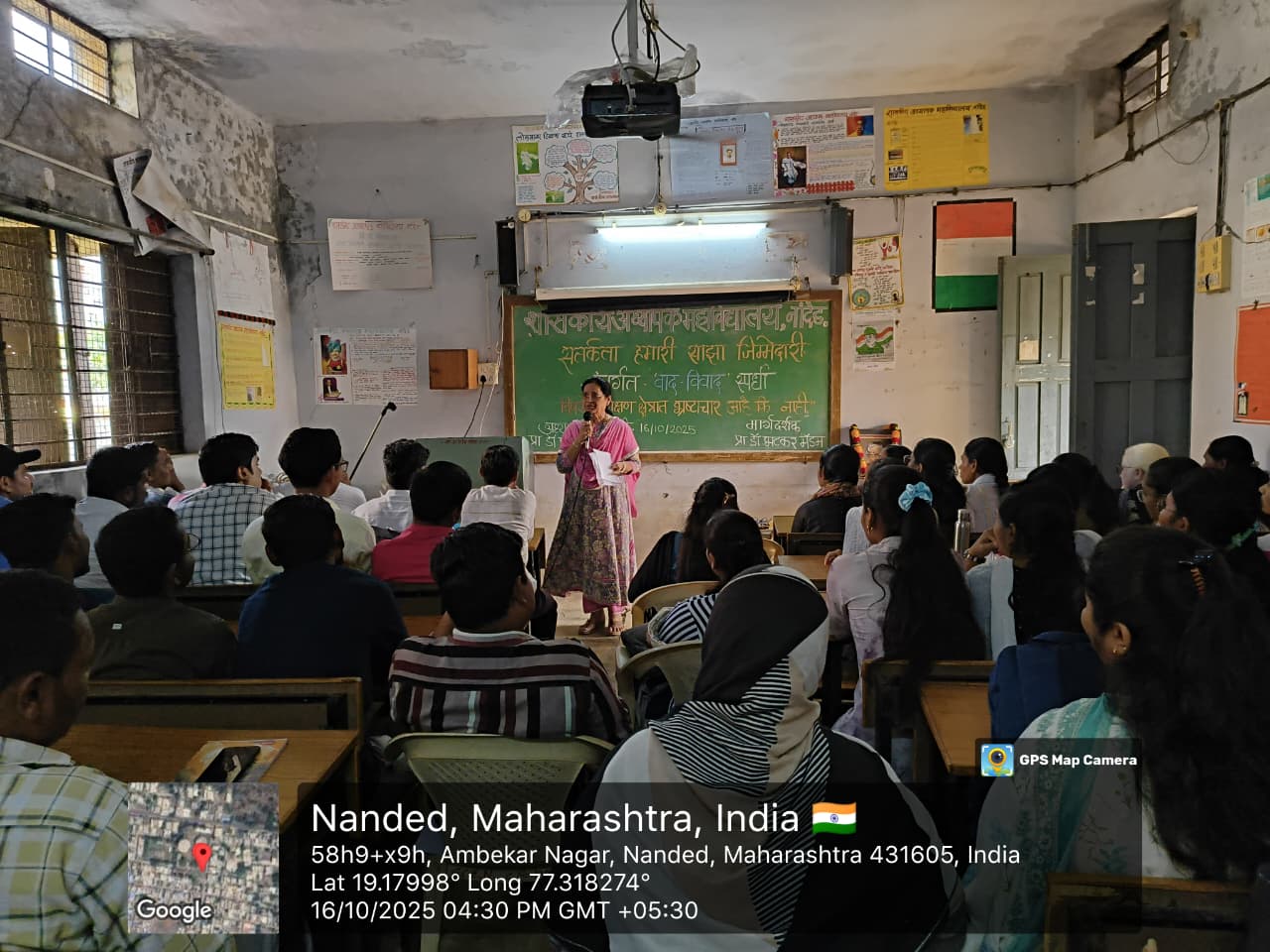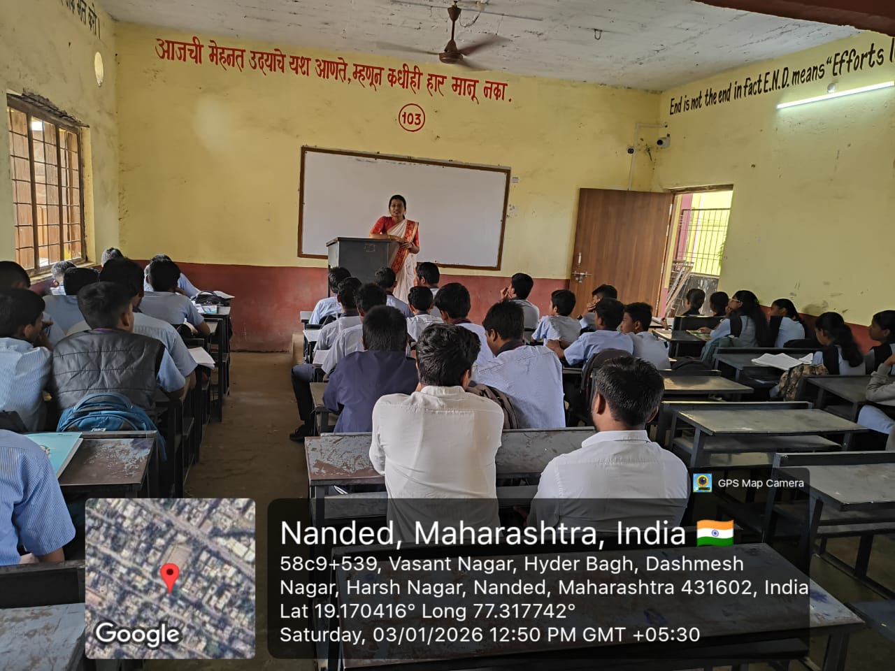 दिनांक 29 नोव्हेंबर 2025 ते दिनांक 28 फेब्रुवारी 2026 पर्यंत बीएड द्वितीय वर्ष चतुर्थ सत्रासाठी अंतर्वासिता (छात्रसेवाकाल )कार्यक्रम राजर्षी शाहू माध्यमिक विद्यालय ,वसंत नगर नांदेड येते सकाळ व दुपारच्या सत्रात लावण्यात आले .दिनांक 10 डीसेंबर 2025 पर्यंत प्रशिक्षणार्थ्यांनी राजर्षी शाहू माध्यमिक विद्यालय ,वसंत नगर, नांदेड येथे विविध कार्यक्रम घेतले यात -अध्ययन -अध्यापन ,क्रीडा स्पर्धा ,आरोग्य तपासणी ,संविधान दिन जागृती , संविधान शपथ ,कार्यानुभव ,मानवी हक्क दिन कायदा जाणीव जागृती इत्यादी उपक्रम प्रशिक्षणार्थ्यांनी शाळेत घेतले ( Internship program has arranged at Rajrshi Shahu Secondary School,Vasant Nagar,Nanded in two sessions from 29 November 2025 to 28 February 2026 .During this Internship programme up to 10 December 2025 ,Teacher trainee has taken various programmes ,such as - Teaching-Learning,Sports, Health check up , awareness about Constitutional day,Taking constitutional oath, work experience, Human Rights day &awareness )