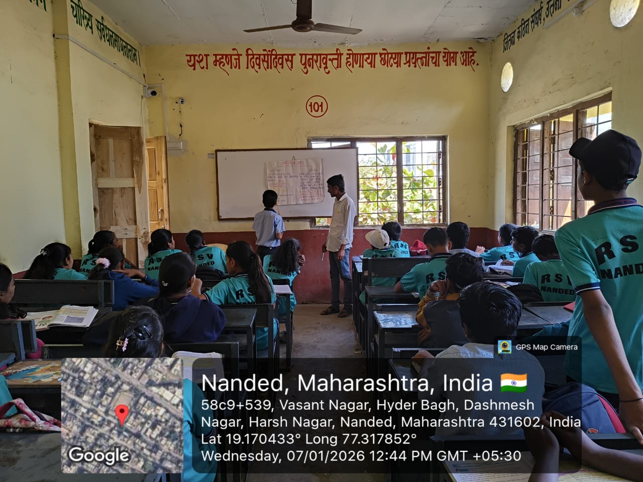 आज दिनांक 11 जानेवारी 2025 रोजी राजर्षी शाहू विद्यालय वसंत नगर, नांदेड येथे डॉ. सारंग यांनी सराव पाठ व निरीक्षण संदर्भात मार्गदर्शन करत असताना