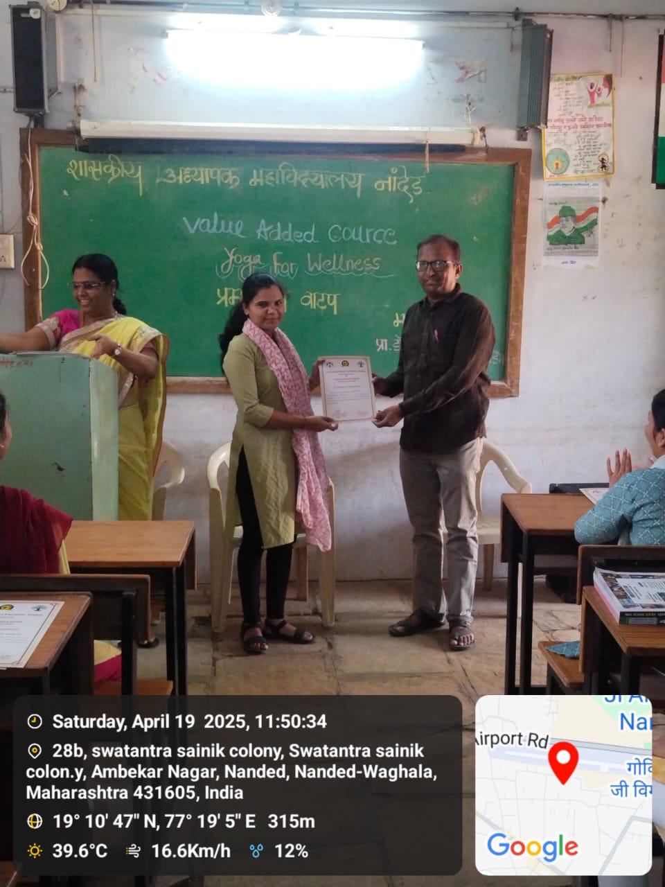 आज दिनांक 17 जानेवारी 2026 रोजी तीन महिन्याचा Asdan course -yoga for wellness हा अभ्यासक्रम पुर्ण झाल्यावर या विषयावर परीक्षा घेण्यात आली ( After completing three months Asdan course-Yoga for Wellness ,Examination of teacher trainees has taken on 17 January 206 )
