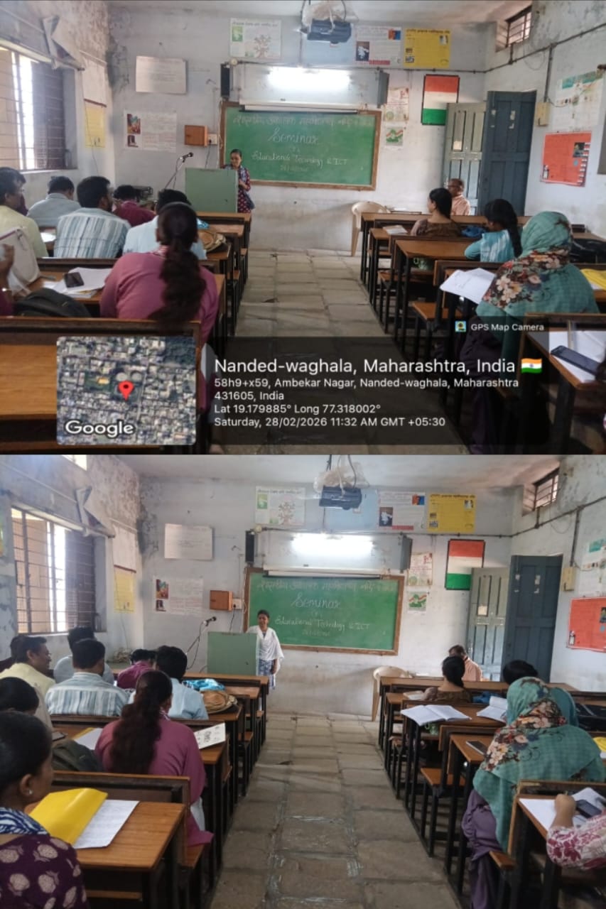 आज दिनांक 28 फेब्रुवारी व 2 मार्च 2026 रोजी शैक्षणिक तंत्र विज्ञान या विषयावर द्वितीय वर्षाच्या 4 th सत्राच्या प्रशिक्षणार्थ्यांचे सेनीनार विभाग प्रमुख डॉ गोविंद भुसारे यांच्या मार्गदर्शनाखाली घेण्यात आले (Second year 4th semester teacher trainee has given seminar on ICT subject under guidance of Dr Govind Bhusare on dated 28 February & 3 march 2026 )