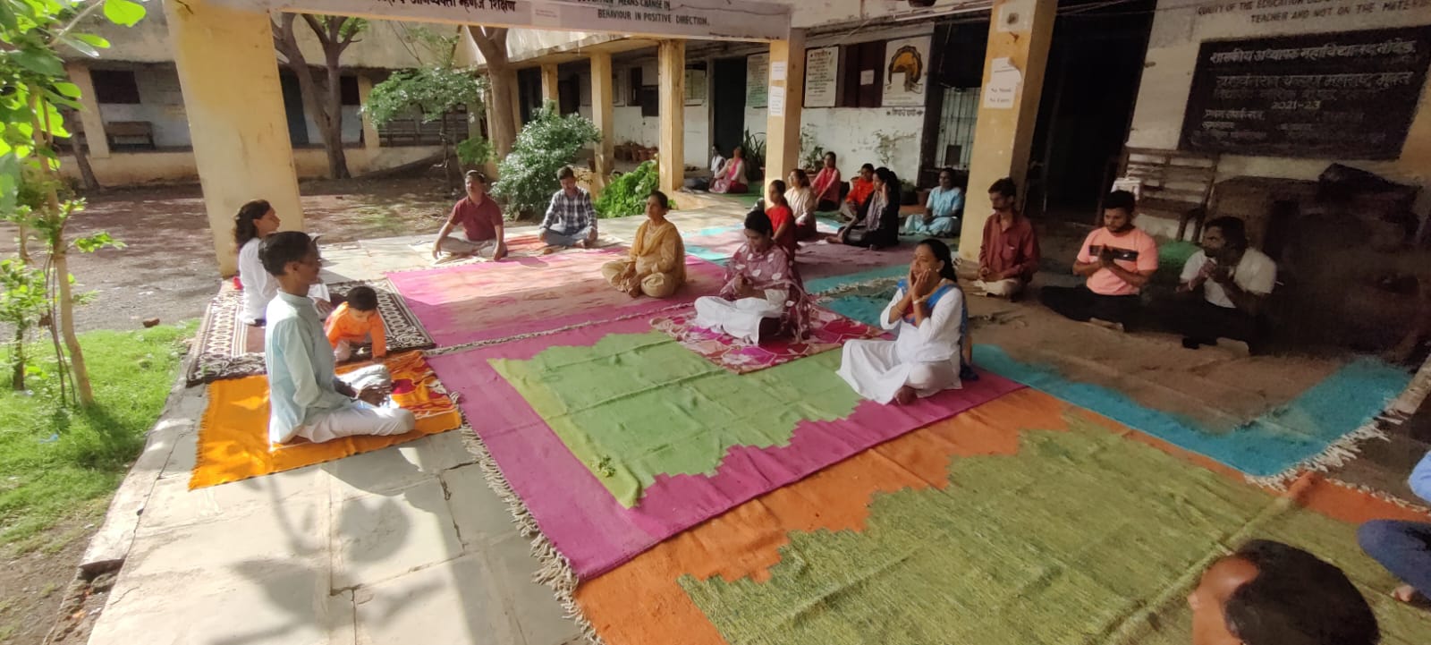 आज दिनांक 8ऑगस्ट 2025 रोजी स्व ची जाणीव या कृतिसत्राचा शेवटचा दिवस. या कृती सत्रांतर्गत सांस्कृतिक कार्यक्रमात विविध कला ,गूण ,कौशल्य सादर करताना प्रशिक्षणार्थी दिसतआहेत (on last day of self understanding work shop ,teacher trainees are presenting various type of art ,skills on 8th August 2025 )